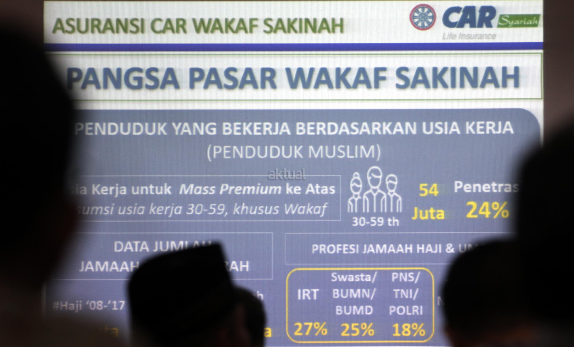 Produk asuransi CAR Wakaf Sakinah yaitu asuransi jiwa unit link berbasis syariah dimana nasabah diajak untuk berwakaf yang nantinya dikelola oleh lembaga wakaf profesional yang hasilnya akan digunakan untuk kemaslahatan umat. AKTUAL/Tino Oktaviano