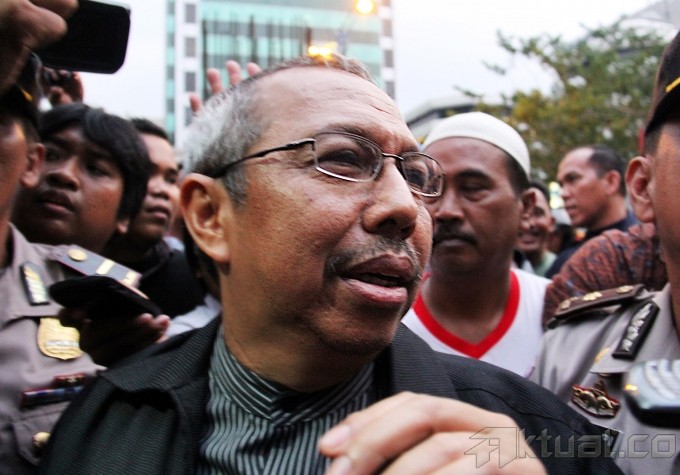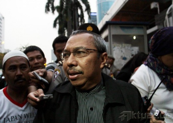 Bendahara Umum PKS Mahfudz Abdurrahman usai diperiksa Komisi Pemberantasan Korupsi (KPK) di Gedung KPK, Jakarta, Senin (20/5). Mahfudz diperiksa sekitar 7 jam sebagai saksi kasus korupsi dan pencucian uang terkait kasus suap impor daging sapi. Dia membantah kalo dana impor sapi itu masuk ke dalam dana operasional PKS. Aktual/Amir Hamzah