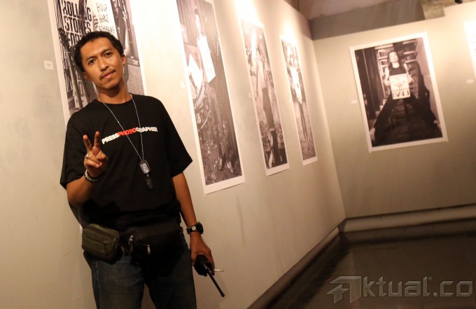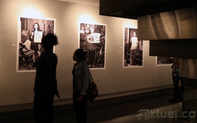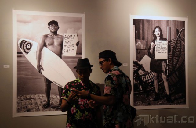Pengunjung melihat beberapa foto esai bertajuk ‘LAUT LUKA BLUES’ karya Pewarta Foto Indonesia dari Antara, Ismar Patrizki di Galeri Foto Jurnalistik ANTARA (GFJA), Jakarta, Jumat (22/5/2015). Pameran bermaterikan 50 foto dalam pendekatan potret warga masyrakat dari berbagai profesi, usia, dan latar belakang di Bali dan Jakarta yang menyertakan pernyataan sikap tertulis terkait dengan rencana Reklamasi Teluk Benoa Bali. Statement yang diutarakan ditulis sendiri oleh setiap individu yang menjadi narasumber dalam foto-foto yang dipamerkan. AKTUAL/TINO OKTAVIANO