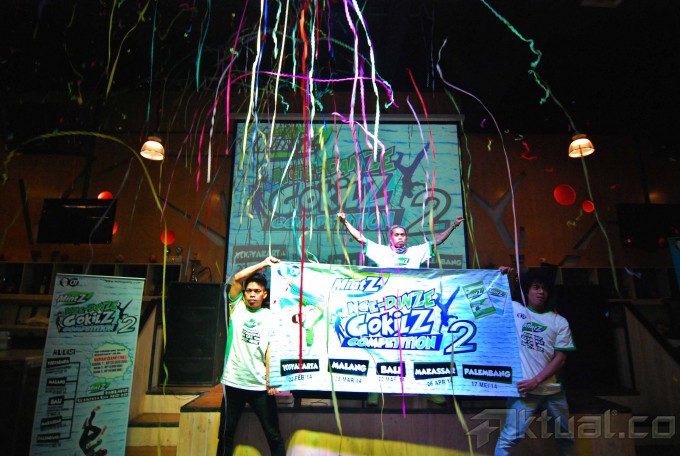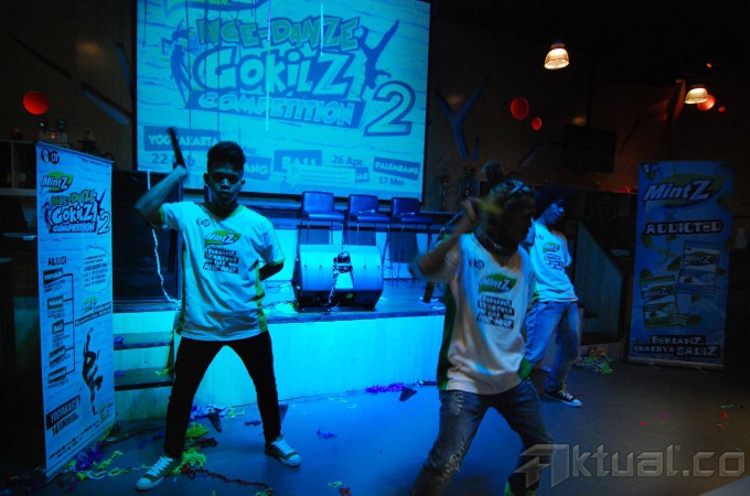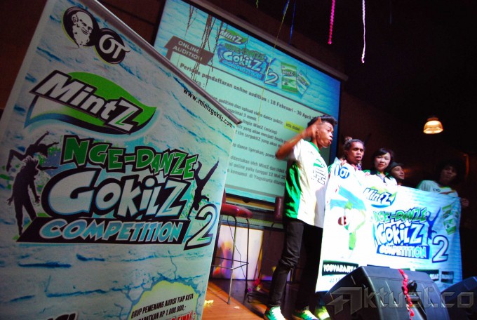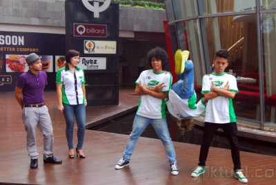 Head of Corporate and Marketing Communication PT Orang Tua Group, Yuna Eka Kristina (kedua kiri) dan Koreografer Indonesia, Hamdy Fabas (kiri) melihat atraksi dari group dance funky papua membuka acara kompetisi menari MintZ Nge-Dance GokilZ Competition 2 (MDGC) di Senayan City, Jakarta, Rabu (19/2/2014). MDGC kembali digelar untuk kedua kalinya, untuk mencari para penari, khususnya kaum muda, yang berani tampil beda dan mengekspresikan dirinya lewat tarian orisinal yang gokil. Boleh segokil mungkin, asalkan positif. Kompetisi ini diadakan di lima kota, Yogyakarta, Malang, Denpasar, Makassar dan Palembang, sementara finalnya akan digelar di Yogyakarta pada 14 Juni mendatang. Aktual/Abe