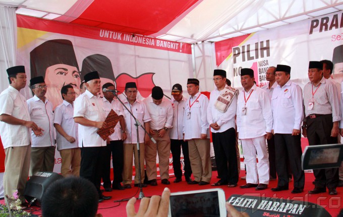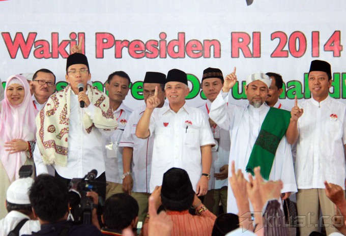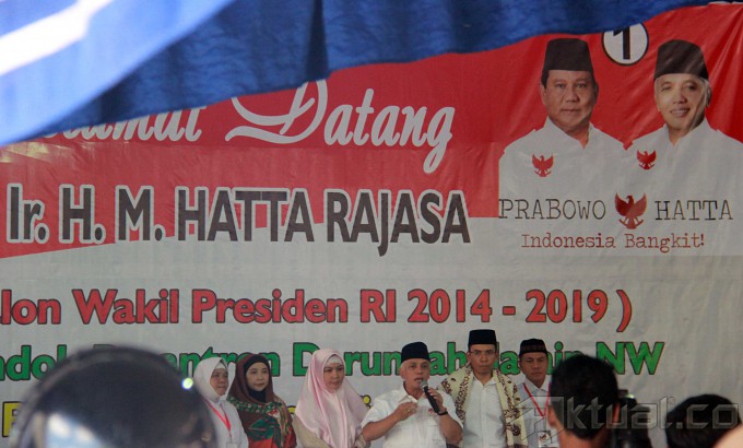 Cawapres Hatta Rajasa, bersama tim pemenangan melaksanakan kampanye di Pondok Pesantren Nahdlatul Wathan, Nusa Tenggara Barat, Jumat (13/6/2014). Selain itu Hatta juga meresmikan Rumah pasangan capres-cawapres Prabowo-Hatta, juga berkunjung ke DPW Muhammadiyah NTB dan Tokoh Nahdlatul Ulama Tuan Guru Haji Tur Mudzi Badudin di wilayah Bagu, Lombok Tengah. Aktual/Tino Oktaviano