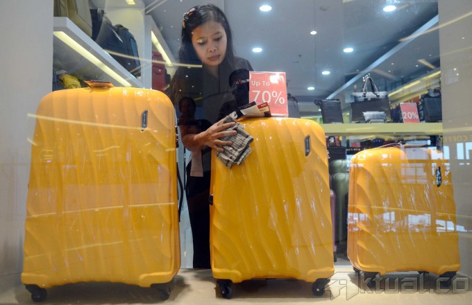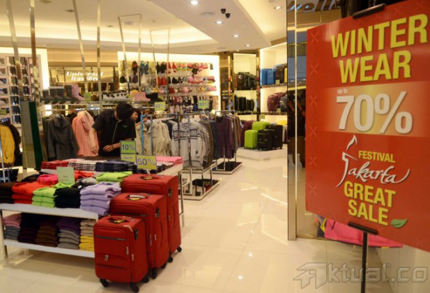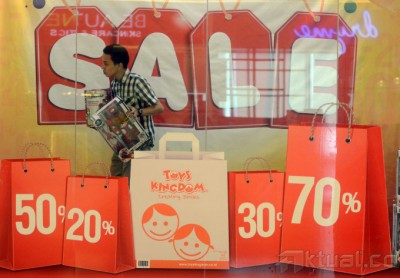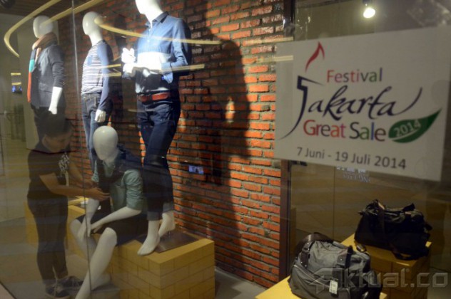 Karyawan sebuat tenant merapihkan barang di untuk persiapan Festival Jakarta Great Sale (FJGS) 2014 di Baywalk Pluit, Jakarta, Kamis (12/6/2014). Menyambut kemeriahan rangkaian acara FJGS 2014, beberapa mall di Jakarta menggelar acara Midnite Sale yang bertajuk Midnite Madness pada tanggal 21-22 Juni 2014. Aktual/Tino Oktaviano