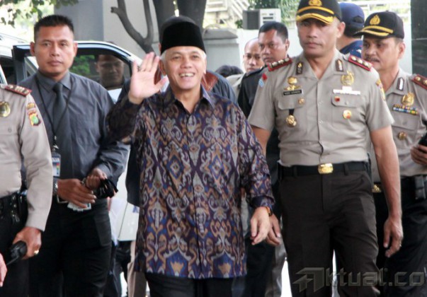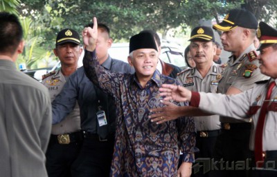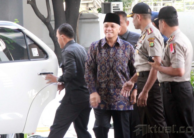 Cawapres Hatta Rajasa mengenakan batik datang di gedung Komisi Pemberantasan Korupsi (KPK), Jakarta, Rabu (25/6/2014). Pasangan calon presiden-wakil presiden Prabowo Subianto-Hatta Rajasa menjalani verifikasi laporan harta kekayaan. Aktual/Tino Oktaviano