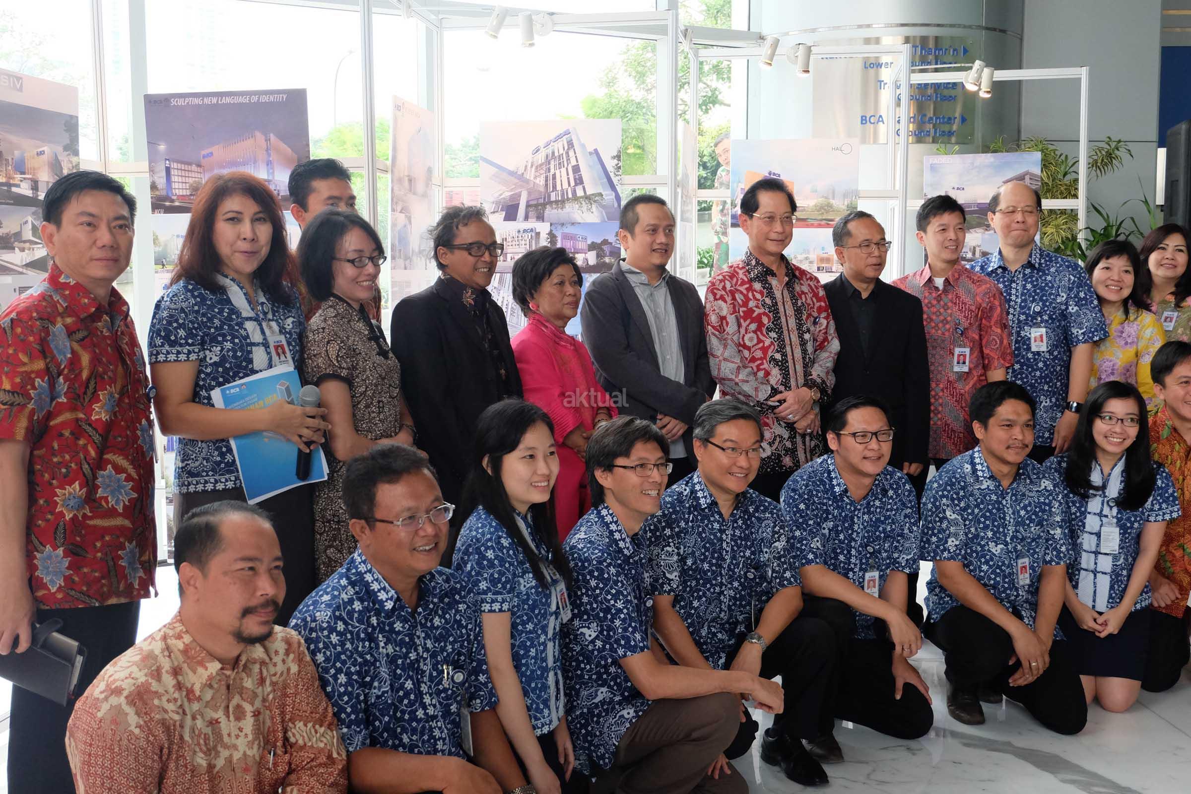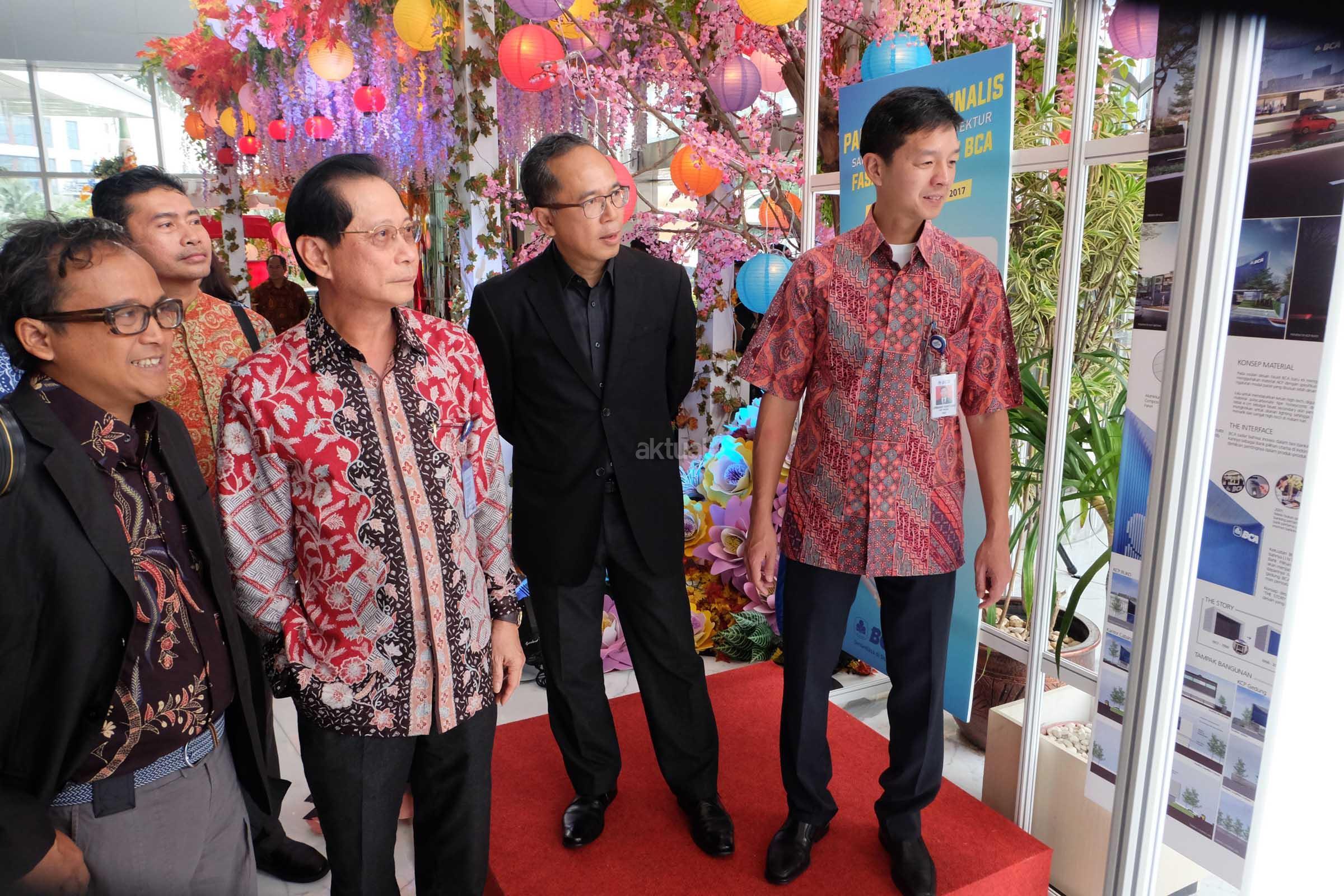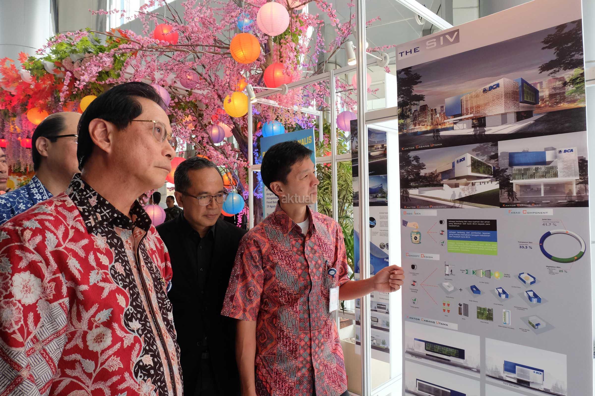 Presdir BCA Jahja Setiaatmadja (kiri) bersama Wakil Presdir Armand W.Hartono (kanan) dan Ketua Ikatan Arsitektur Indonesia Ahmad Djuhara (tengah), melihat karya pemenang Sayembara Desain Arsitektur Tampak Depan Fasad Bangunan BCA, di Kantor Pusat Menara BCA, Jakarta, Senin (30/1) Dari 10 karya terbaik ini, akan dipilih 5 karya terbaik yang selanjutnya menyiapkan materi animasi 3D yang nantinya akan dipresentasikan pada penjurian tahap 2 dengan durasi animasi maksimal 3 (tiga) menit.Melalui “Sayembara Desain Arsitektur Tampak Depan Fasad Bangunan BCA” ini, BCA memberikan kesempatan kepada masyarakat untuk berpartisipasi menawarkan Konsep Perancangan tampak muka fasade bangunan yang akan digunakan untuk KCU dan KCP BCA di seluruh Indonesia. Kriteria yang menjadi penilaian adalah berwawasan lingkungan (green design), modern dan berteknologi tinggi (modern and high tech), mudah direalisasikan (constructability), dan pemeliharaan relatif praktis (low maintanance). AKTUAL/Eko S Hilman
