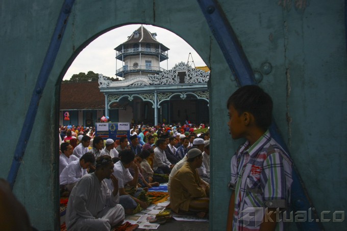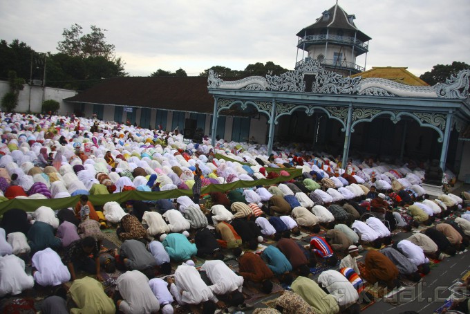 Umat muslim menunaikan Sholat Ied di halaman Keraton Kasunanan, Solo, Jawa Tengah, Indonesia, Senin (28/7/2014). Umat muslim Indonesia merayakan Hari Raya Idul Fitri 1 Syawal 1435 H pada hari Senin, 28 Juli 2014 sesuai dengan jadwal yang ditetapkan Pemrintah Indonesia. Aktual/str