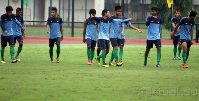 Pemain Timnas Indonesia U-19 serius berlatih dalam pelatnas tahap kedua dilapangan Universitas Negeri Yogyakarta Jumat, 31 Januari 2014. Timnas U-19 mulai menjalani pemusatan latihan di Yogyakarta selama delapan bulan ke depan sebagai persiapan Piala AFC U-19 pada bulan Oktober 2014 mendatang di Myanmar. Aktual/Bagas Triputro
