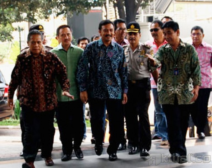 Mantan Menteri Pemuda dan olahraga (Menpora) Andi Alifian Mallarangeng, menjawab pertanyaan wartawan saat memenuhi panggilan penyidik Komisi Pemberantasan Korupsi (KPK) di Gedung KPK, Jakarta, Jumat (11/10/2013). Andi diperiksa sebagai tersangka kasus dugaan korupsi proyek Hambalang, Bogor, Jawa Barat. Aktual/Oke Dwi Atmaja