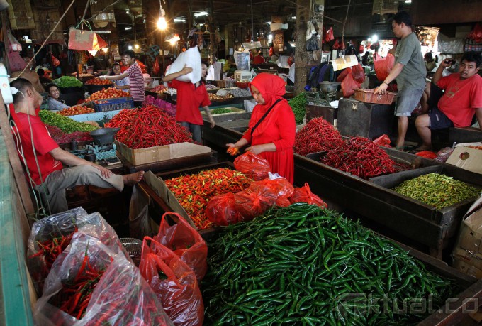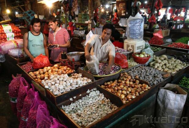 Pedagang sedang membungkus bawang yang dijual di pasar Senen, Jakarta, Kamis (4/6/2015). Harga sejumlah bahan kebutuhan pokok terus naik menjelang bulan puasa dan Lebaran. Sekretaris Jenderal Asosiasi Pedagang Pasar Indonesia, Ngadiran, menyebutkan harga-harga komoditas seperti telur, bawang merah, dan cabai merah, melonjak hingga mencapai dua hingga tiga kali lipat. AKTUAL/TINO OKTAVIANO