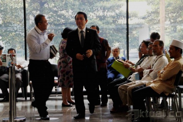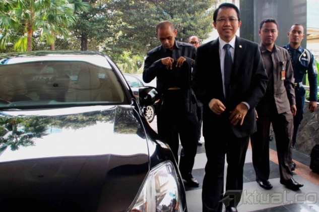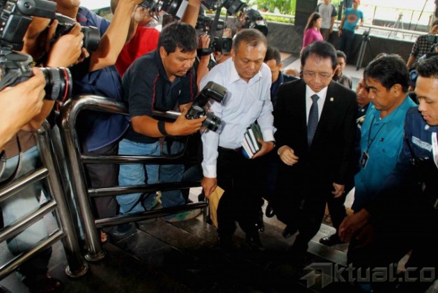 Ketua DPR RI Marzuki Alie saat tiba mendatangi gedung Komisi Pemberantasan Korupsi (KPK), Jakarta, Selasa (22/10/2013). Kehadiran salah satu peserta Konvensi Capres Demokrat tersebut untuk memenuhi panggilan KPK guna memberikan keterangan sebagai saksi tersangka Mantan Ketua Umum Partai Demokrat, Anas Urbaningrum terkait kasus korupsi Hambalang. Aktual/Oke Dwi Atmaja