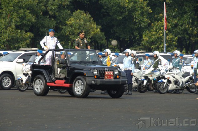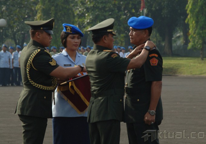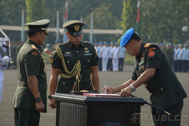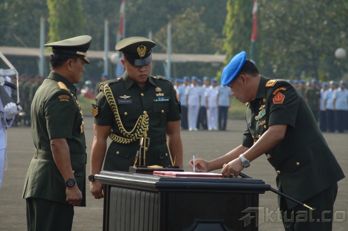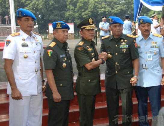 Panglima TNI Jenderal Moeldoko memimpin upacara peresmian Polisi Militer (POM) TNI di Mabes TNI Cilangkap, Jakarta Timur, Senin (4/5/2015). Upacara yang diikuti oleh 759 pasukan POM TNI dan Polri, terdiri dari, 73 personel Mabes TNI, 200 personel TNI AD, 196 personel TNI AL, 196 personel TNI AU dan 94 personel Polri. AKTUAL/PUPEN TNI