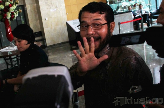Hakim Mahkamah Konstitusi, Anwar Usman (kiri) dan Maria Farida Indrati (kanan), melambaikan tanggan kepada wartawan saat menunggu pemeriksaan di gedung Komisi Pemberantasan Korupsi, Jakarta, Rabu (16/10/2013). Maria dan Anwar diperiksa terkait kasus suap yang menjerat ketua MK nonaktif, Akil Mochtar. Aktual/Oke Dwi Atmaja