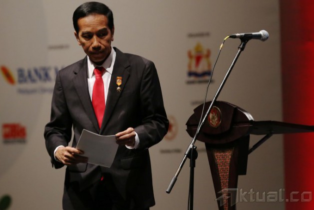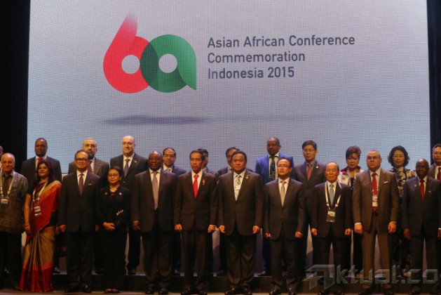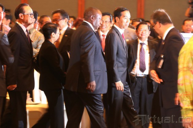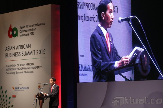 Presiden Joko Widodo memberikan sambutan ketika membuka Asian-African-Business Summit yang merupakan rangkaian peringatan ke-60 Konferensi Asia Afrika di Jakarta Convention Centre, Jakarta, Selasa (21/4/2015). Asian-African-Business Summit itu mengangkat tema “Realization of Asia-Africa Partnership for Progress and Prosperity”. AKTUAL/TINO OKTAVIANO