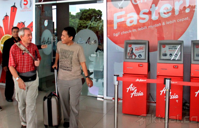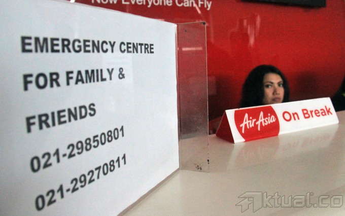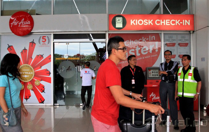 Loket pemberangkatan Maskapai Air Asia yang berada di Bandara Soekarno- Hatta, Cengkareng, Tanggerang Banten, terlihat sepi penumpangnya dan tidak ada kesibukan seperti di Bandara Juanda, Surabaya, Minggu (28/12/2014), yang ada beberapa penumpang Air Asia untuk penukaran tiket dan beberapa karyawan berjaga. AKTUAL/MUNZIR