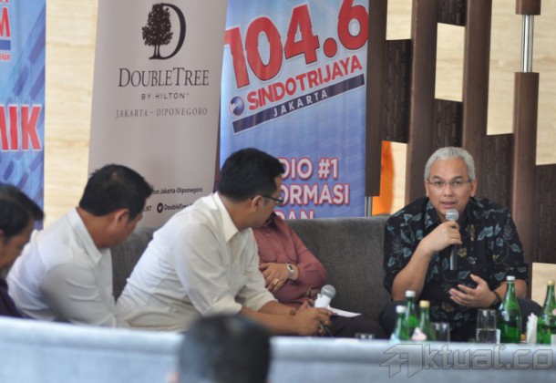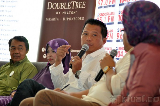 Sekjen Asosiasi Pedagang Pasar Seluruh Indonesia (APPSI) Ngadiran, Pengungkap Beras Sintetis Dewi Septiana, Ketua Perpadi Nellys Soekidi, Dirjen P2HP Yesni Emilia Harahap dan Director of Planing and Business Development Fadzri Santosa menjadi narasumber dalam acara diskusi di Jakarta, Sabtu (23/5/2015). Diskusi tersebut membahas isu beras yang terbuat dari plastik yang kini beredar di masyarakat dengan mengangkat tema “Kejahatan Beras Sintetis”. AKTUAL/JUNAIDI MAHBUB