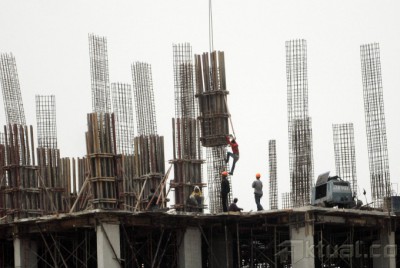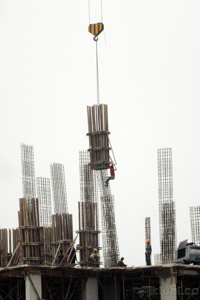 Pekerja memasang rangka besi beton proyek gedung bertingkat di Jakarta, Rabu (6/11/2013). Pasar properti diperkirakan mencapai titik pertumbuhan tertinggi di semester I-2013 dan mulai menunjukkan tren menurun di semester II-2013. Saat ini dunia properti sedang dihadapkan pada siklus penurunan pertumbuhan pasar properti hingga melambat sampai 2 tahun ke depan. Aktual/Tino Oktaviano