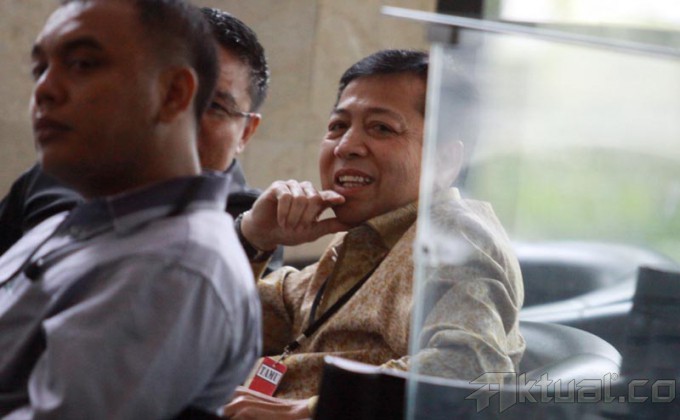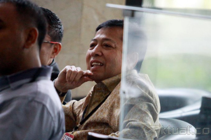 Bendahara Umum Partai Golkar Setya Novanto duduk dilobi gedung Komisi Pemberantasan Korupsi (KPK), Jalan HR Rasuna Said, Jakarta, Selasa (7/1/2014), saat memenuhi panggilan KPK. Setya Novanto diperiksa sebagai saksi untuk mantan Ketua Mahkamah Konstitusi Akil Mochtar yang menjadi tersangka di kasus suap penanganan perkara sengketa Pilkada Kabupaten Lebak dan Kabupaten Gunung Mas di MK. Aktual/Tino Oktaviano