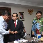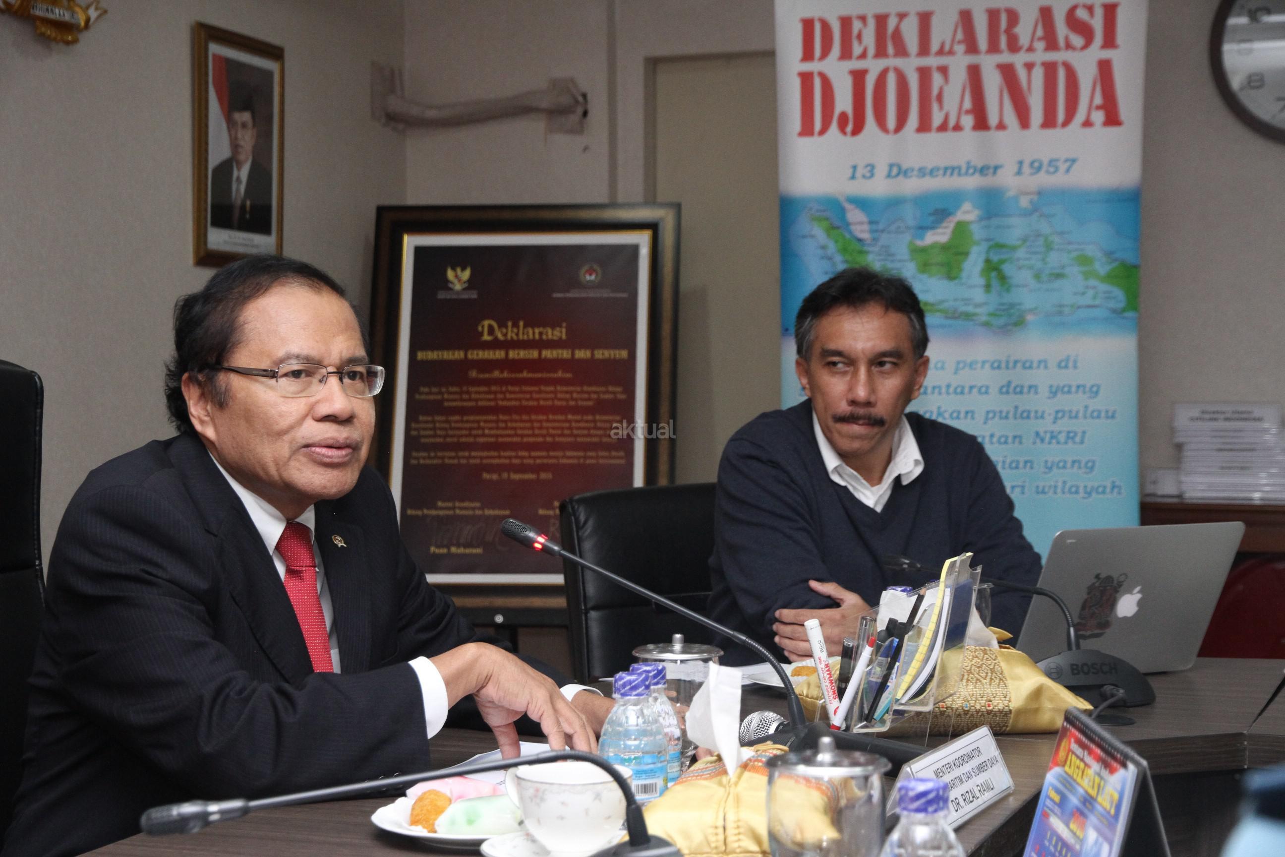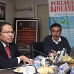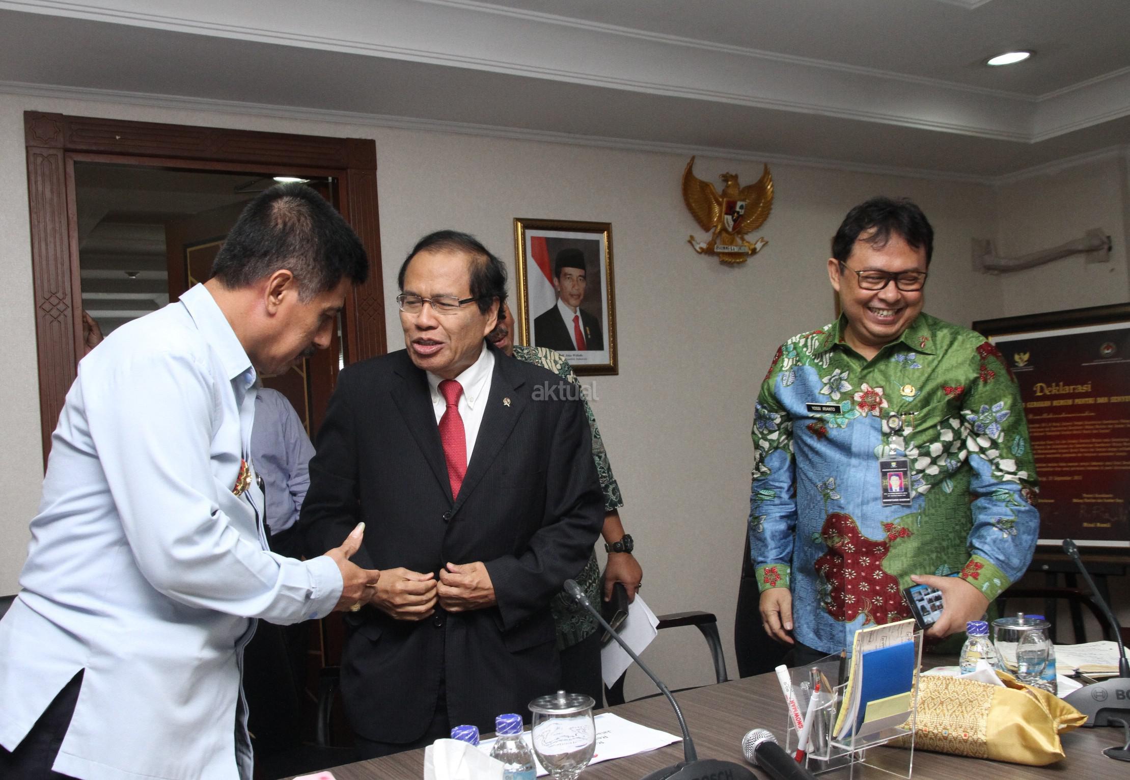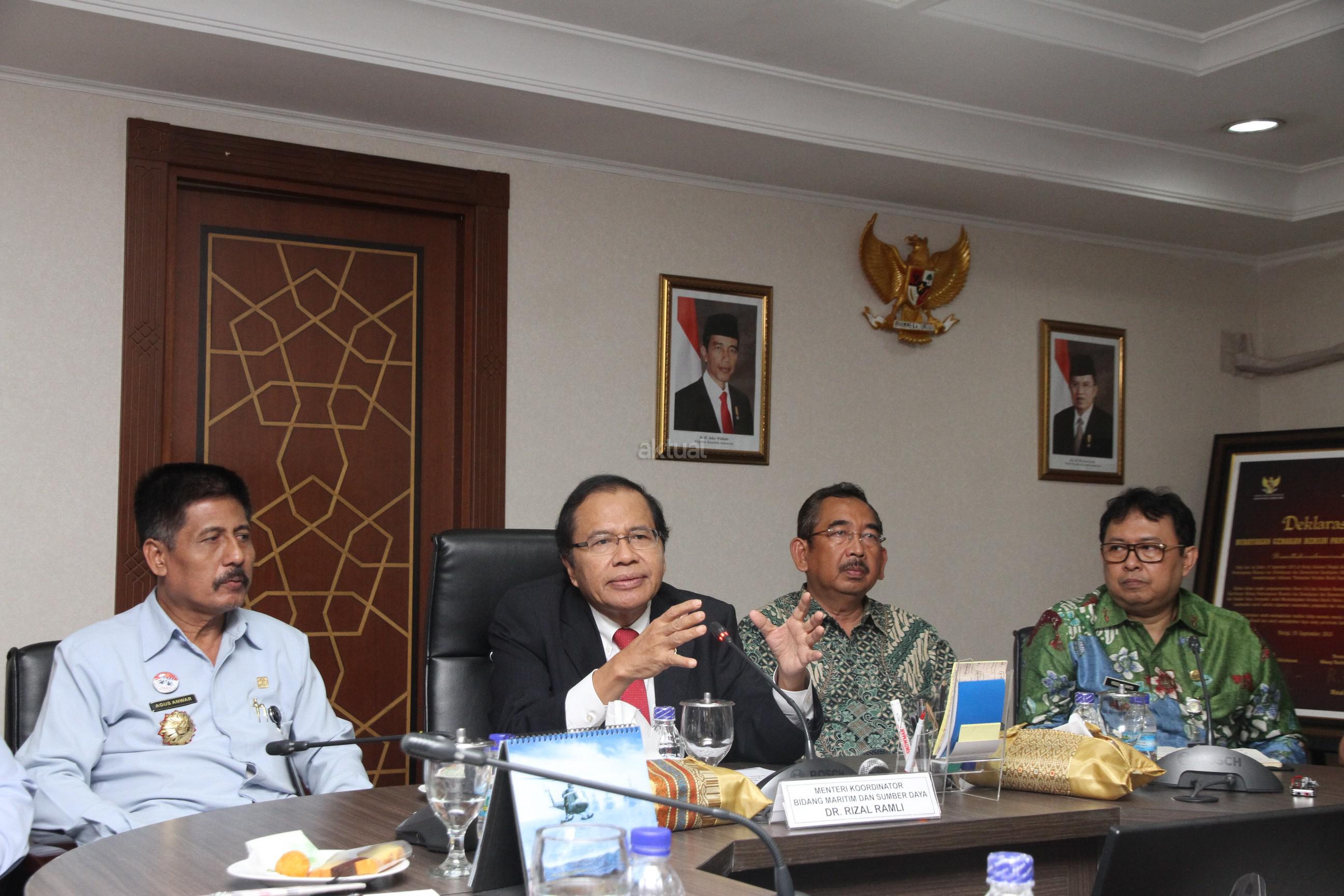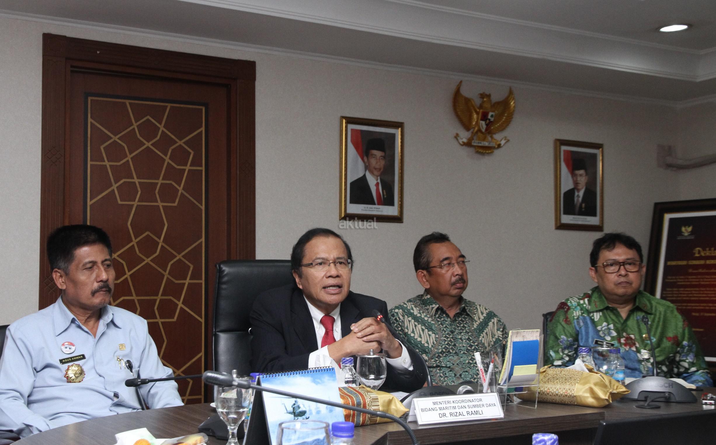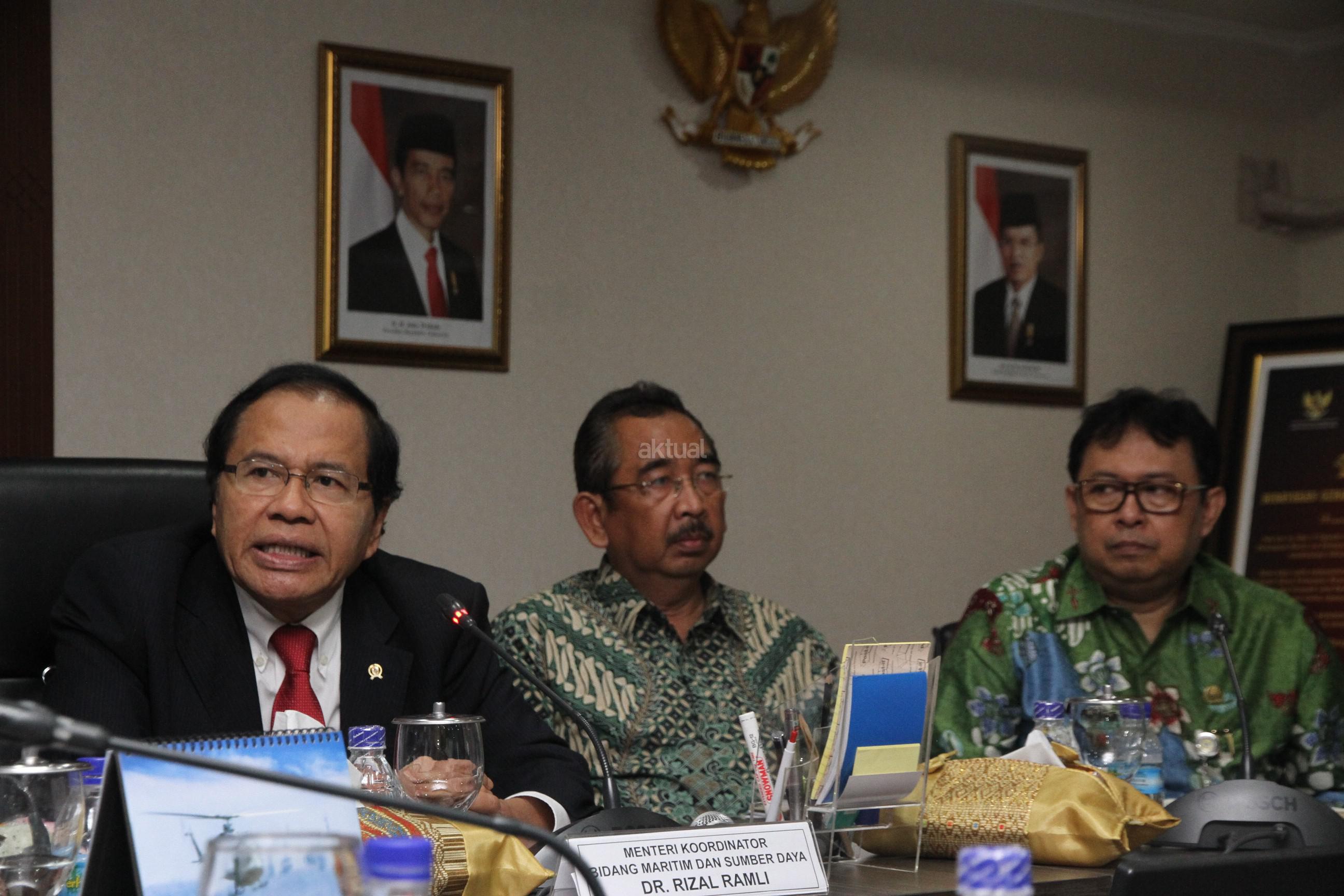 Menteri Koordinator Maritim dan Sumber Daya Rizal Ramli Deputi Bidang Infrastruktur Kemaritiman, Ridwan Jamaludin memberikan penjelasa kepada wartawan terkait pembangunan jalan tol kota Bandung di Jakarta, Senin (7/3). Pembangunan jalan tol yang melintasi sejumlah pusat kota di Bandung Raya ini diperkirakan akan merogoh dana hingga Rp3,56 triliun.Maritim/YSN