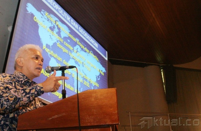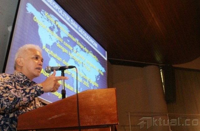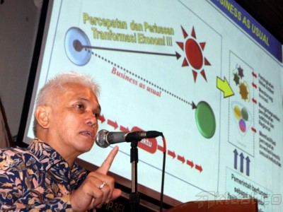 Menko Perekonomian Hatta Rajasa menjadi pembicara dalam kuliah umum di Aula Pusat Studi Jepang, Universitas Indonesia, Depok, Jawa Barat, Selasa (28/5). Hatta Rajasa menjelaskan mengenai reformasi politik ekonomi melalui peranan perguruan tinggi dalam kualitas SDM dan pengembangan IPTEK sebagai salah satu strategi utama MP3EI. Aktual/Tino Oktaviano