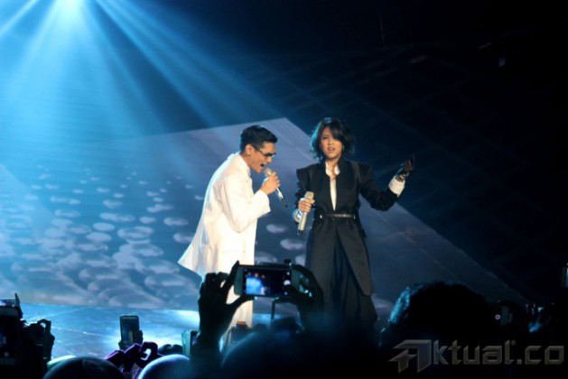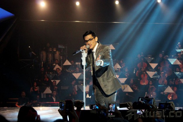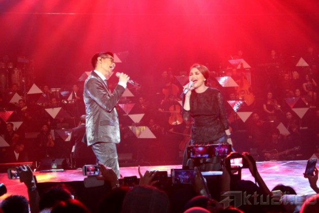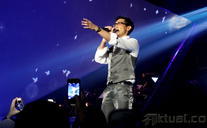 Aksi panggung solois, Afgan Syah Reza atau Afgan saat tampil pada konsernya yang bertajuk ‘Dari Hati’ di Jakarta Convention Center (JCC) Senayan, Jakarta Pusat, Sabtu (14/2/2015).Afgan menggelar konser tunggal untuk pertama kalinya yang bertajuk “Dari Hati” dengan diiringi komposer Erwin Gutawa dalam moment Valentine. Afgan membawakan sekitar 18 lebih lagu dalam konsernya, dan berduet dengan beberapa penyanyi seperti Rossa, Sherina Munaf dan DJ Dipha Barus. AKTUAL/VINA FATMA SARI