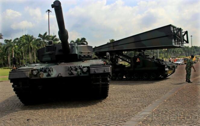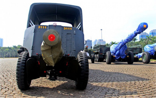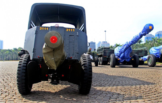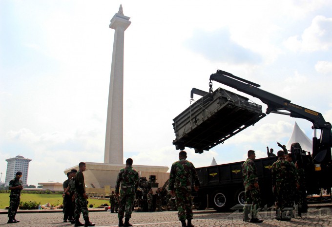 Sejumlah personil TNI meyiapkan kendaraan tempur yang akan dipamerkan di ajang pameran Alutsista di Monas, Jakarta, Rabu (10/12/2014). Pameran yang akan diselanggarakan dari 12 hingga 15 Desember 2014 tersebut menampilkan peralatan tempur seperti Tank Leorpad, Panser Anoa, dan berbagai senjata yang digunakan oleh TNI AD. AKTUAL/MUNZIR