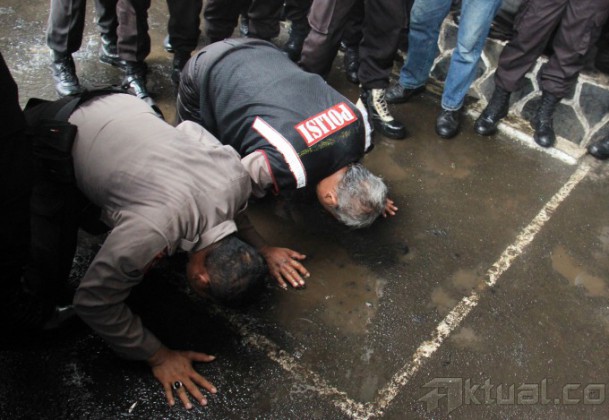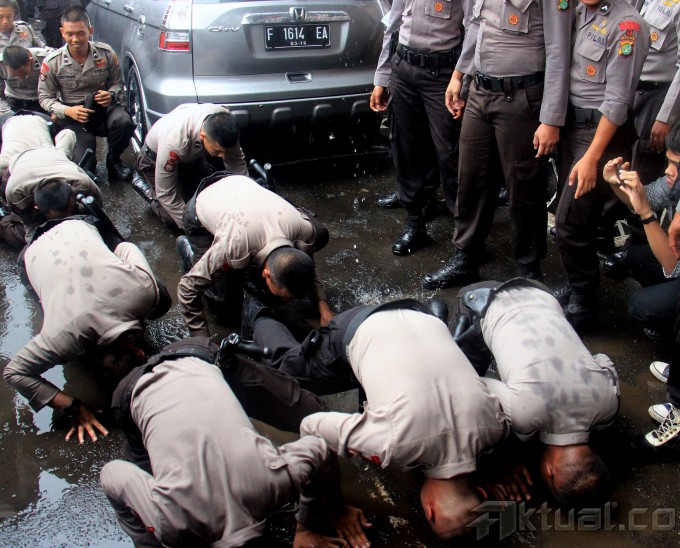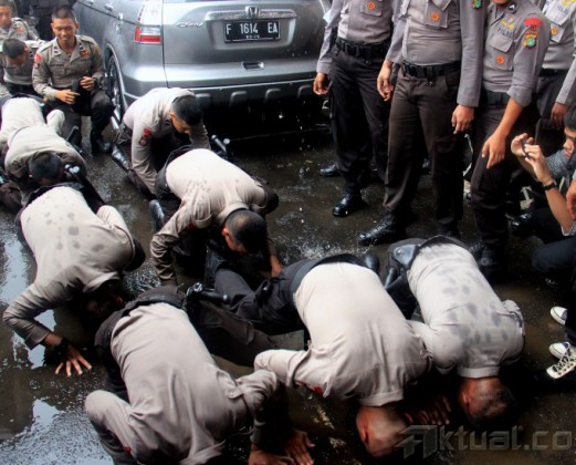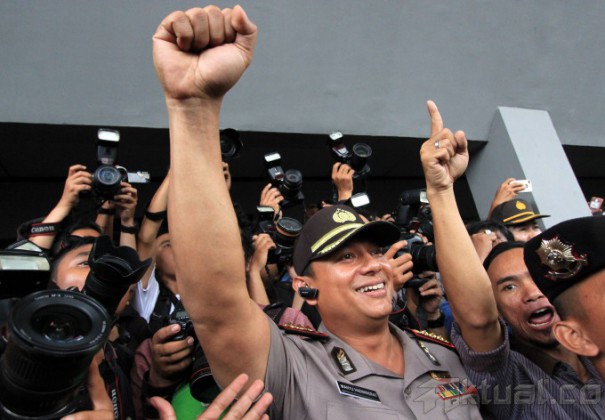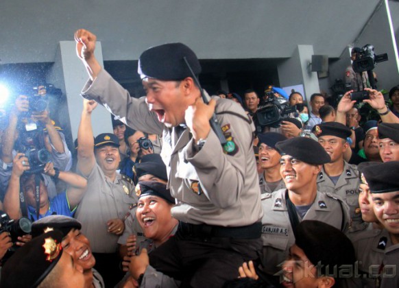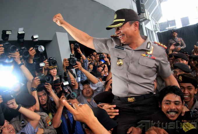 Kapolres Jakarta Selatan, Kombes Wahyu Hadiningrat diangkat oleh puluhan anggota polisi usai mendengarkan keputusan hakim atas dimenangkannya sidang Praperadilan Komjen Pol Budi Gunawan di PN Jakarta Selatan, Senin (16/2/2015). Dalam sidang Praperadilan Hakim tunggal Sarpin Rizaldi akhirnya memutuskan bahwa penetapan tersangka Komjen Pol Budi Gunawan oleh KPK tidak sah. AKTUAL/MUNZIR