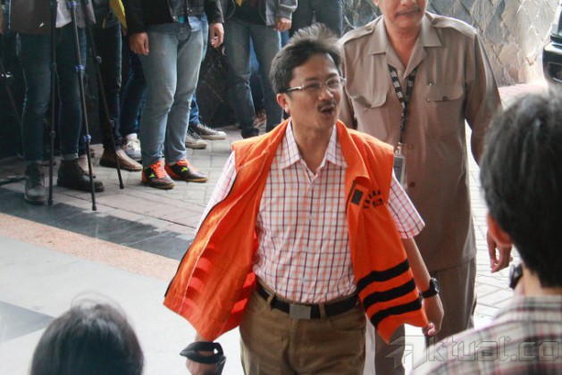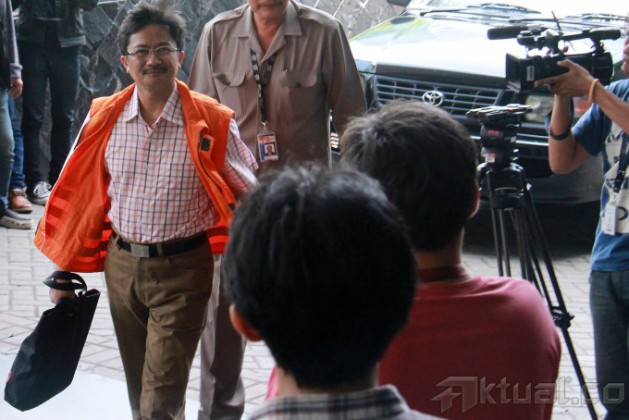 Mantan Kepala Satuan Kerja Khusus Pelaksana Kegiatan Hulu Minyak dan Gas (SKK Migas) Rudi Rubiandini, saat akan menjalani pemeriksaan di Komisi Pemberantasan Korupsi (KPK), Jakarta, Senin (18/11/2013). KPK memeriksa Rudi sebagai saksi untuk tersangka Deviardi. KPK menjerat Rudi dan Deviardi dengan pasal 12 huruf a dan b atau pasal 5 ayat 2 atau pasal 11 Undang-Undang No.31/1999 tentang Pemberantasan Tindak Pidana Korupsi Jo Pasal 55 ayat 1 kesatu KUHP. Sementara Simon diduga melanggar pasal 5 ayat 1 atau pasal 13 Undang-Undang No.31/1999 tentang Pemberantasan Tindak Pidana Korupsi jo Pasal 55 ayat 1 kesatu KUHP. Aktual/Tino Oktaviano