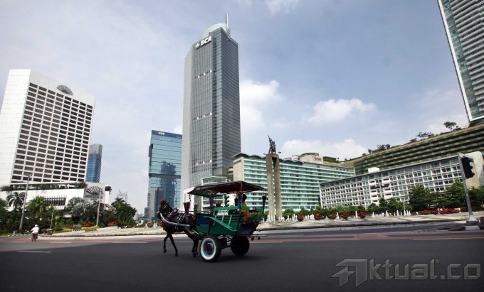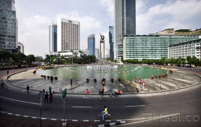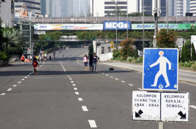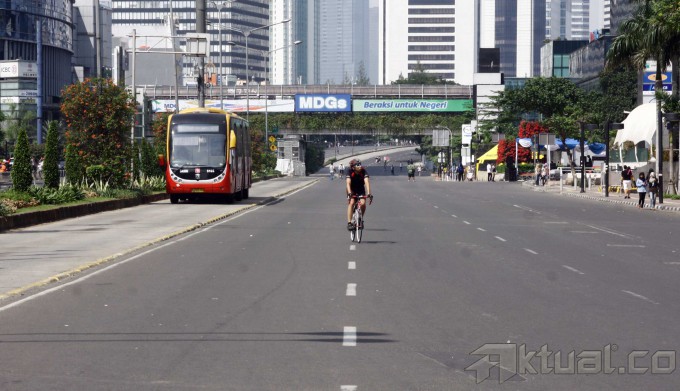 Suasana car free day tampak sepi dikawasan Bundaran Hotel Indonesia, Jakarta Pusat, Minggu (29/6/2014). Biasanya warga berjubel di Bundaran HI untuk memanfaatkan car free day, namun pada awal puasa ini tampak sepi. Aktual/Tino Oktaviano