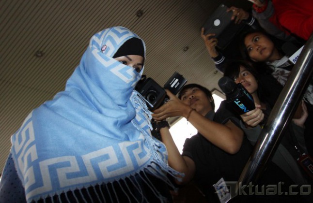 Istri M Nazaruddin, Neneng Sri Wahyuni turun dari mobil tahanan saat akan diperiksa di gedung Komisi Pemberantasan Korupsi (KPK), senin (10/3/2014). Neneng merupakan mantan Direktur Keuangan PT Anugrah Nusantara dan akan diperiksa sebagai saksi untuk AU (Anas Urbaningrum) sebagai tersangka kasus dugaan penerimaan hadiah atau gratifikasi atas proyek Hambalang atau proyek lain. Aktual/Tino Oktaviano