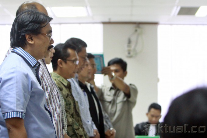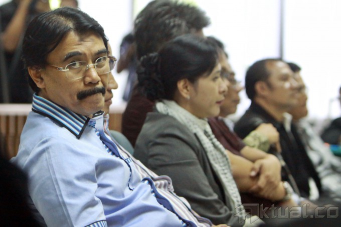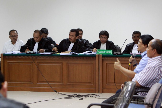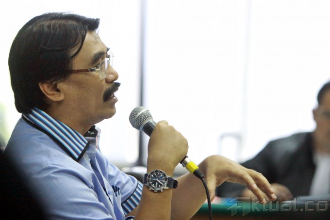 Mantan Menpora Adhyaksa Dault saat bersaksi untuk Deddy Kusdinar, terdakwa perkara dugaan korupsi proyek Pusat Pendidikan Pelatihan serta Sekolah Olahraga Nasional Hambalang di Sidang Tindak Pidana Korupsi (Tipikor), Jakarta, Selasa (19/11/2013). Dalam sidang tersebut Adhyaksa mengatakan dirinya tidak memahami membengkaknya anggaran proyek Hambalang dari anggaran awal Rp 125 miliar menjadi Rp 2,5 triliun. Dan proyek Hambalang sempat dia hentikan karena ketiadaan sertifikat lahan yang akan dibangun. Aktual/Tino Oktaviano