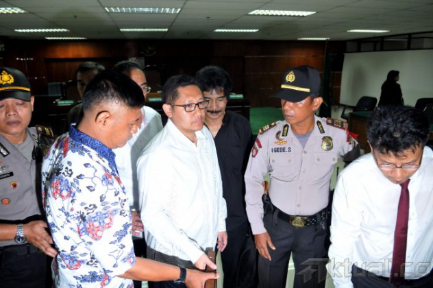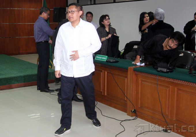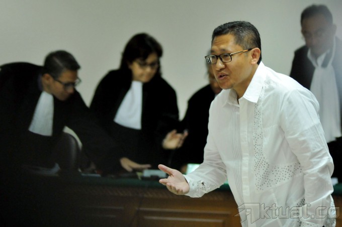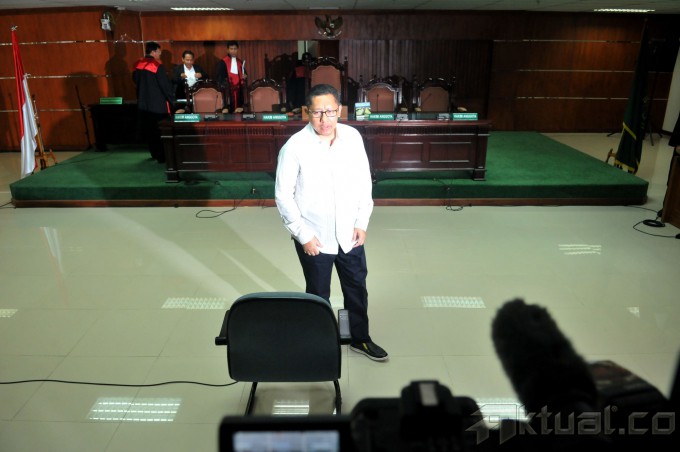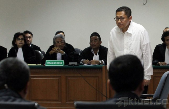 Terdakwa Anas Urbaningrum saat menjalani sidang perdana di Pengadilan Tindak Pidana Korupsi (Tipikor), Jakarta, Jumat (30/5/2014). Dalam sidang tersebut, Anas Urbaningrum didakwa telah menerima dua mobil dan uang miliaran rupiah sebagai imbalan atas pengurusan beberapa proyek-proyek pemerintah. Aktual/Tino Oktaviano