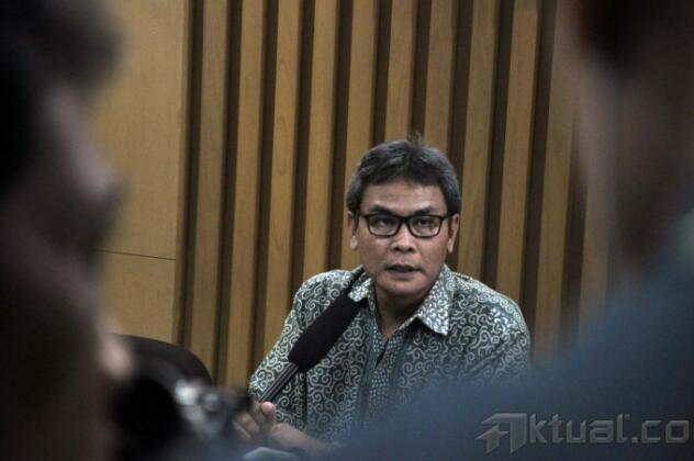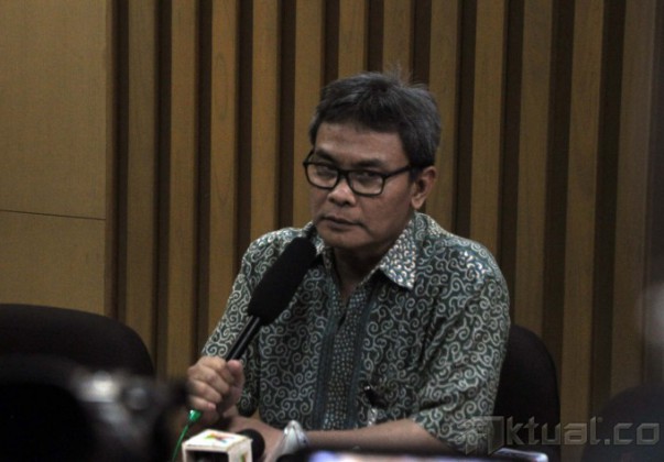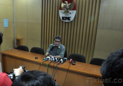 Juru Bicara Komisi Pemberantasan Korupsi (KPK), Johan Budi, saat berbicara di hadapan wartawan seputar berita sprindik atas nama Setya Novanto di Gedung Komisi Pemberantasan Korupsi (KPK), Jakarta, Selasa (7/10/2014). Johan Budi mengatakan bahwa fotokopi potongan Sprindik KPK atas nama Ketua DPR tersebut, yang beredar sejak pagi tadi bukan produk pihaknya melaikan hoax. AKTUAL/JUNAIDI MAHBUB
