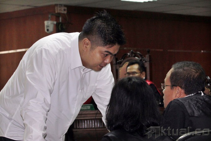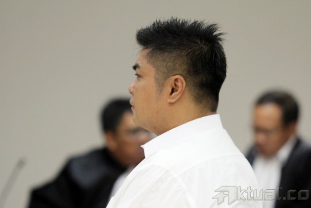 Tersangka suap mantan Ketua SKK Migas Komisaris PT Kernel Oil Private Limited (KOPL) Simon Gunawan Tanjaya saat menjalani sidang perdana di pengadilan Tindak Pidana Korupsi (Tipikor) di Jakarta, Kamis (7/11/2013). Simon didakwa oleh jaksa telah menyuap Mantan Kepala SKK Migas Rudi Rubiandini. Aktual/Tino Oktaviano