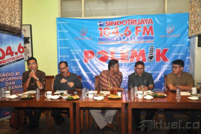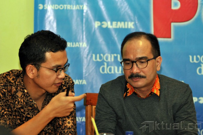Dari kiri ke kanan, Peneliti PSHK Miko Ginting, Tim Perumus UU KPK 2002 Firman Jaya Daeli, Moderator Pangeran Ahmad Nurdin, Wakil Ketua DPR RI Fadli Zon, Pakar Hukum Irman Putra Sidin saat menjadi pembicara dalam acara diskusi di Warung Daun, Jakarta, Sabtu (30/5/2015). Diskusi tersebut berjudul “Duh..! KPK”. AKTUAL/JUNAIDI MAHBUB