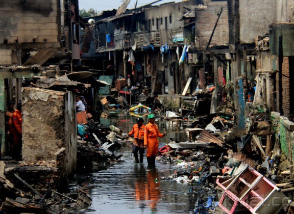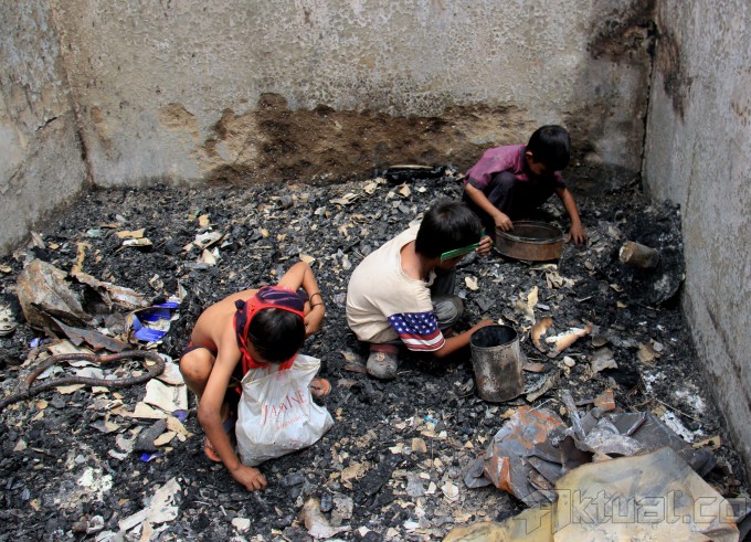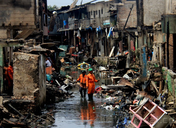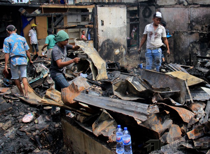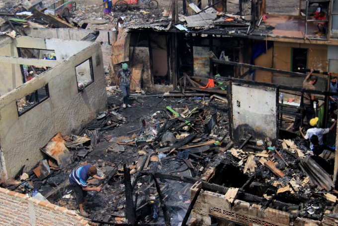 Warga mengumpulkan barang-barang yang masih bisa terpakai diantara puing bekas kebakaran di Jati Bunder, Tanah Abang, Jakarta Pusat, Jumat (6/3/2015). Kebakaran yang melanda kawasan ini mehanguskan sedikit 248 rumah dari dua RW dan sembilan RT. Total kerugian sejauh ini belum bisa ditaksir, namun diprediksi mencapai miliaran rupiah. AKTUAL/MUNZIR