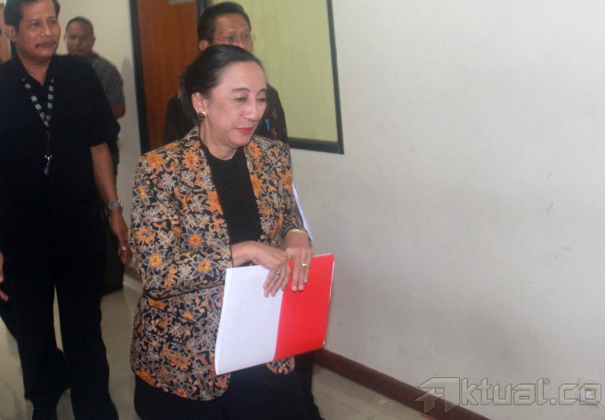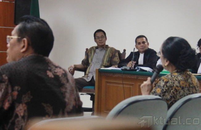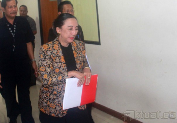Hakim Mahkamah Konstitusi Maria Farida Indrati bersama Panitera MK Kasianur Sidahuruk menjadi saksi untuk terdakwa suap penanganan sengketa Pilkada Gunung Mas, Hambith Bintih, di Pengadilan Tipikor, Jakarta, Kamis (16/1/2014). Hambit Bintih, Bupati Gunung Mas terpilih yang terlibat suap dalam sengketa di Mahkamah Konstitusi. Aktual/Tino Oktaviano