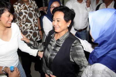 Direktur Utama PT Indoguna Utama Maria Elizabeth Liman mendapat dukungan dari karyawannya saat menjalani sidang perdana kasus dugaan suap pengaturan kuota impor daging sapi di Pengadilan Tindak Pidana Korupsi (Tipikor) Jakarta, Selasa (11/3/2014). Elizabeth diduga menyuap penyelenggara negara, yaitu Luthfi Hasan Ishaaq, yang saat itu merupakan anggota Dewan Perwakilan Rakyat (DPR) sebesar Rp 1,3 miliar. Uang itu disebut bagian dari commitment fee Rp 40 miliar yang dijanjikan kepada Luthfi melalui Fathanah. Aktual/Tino Oktaviano