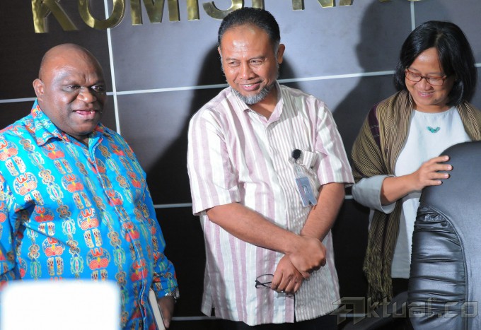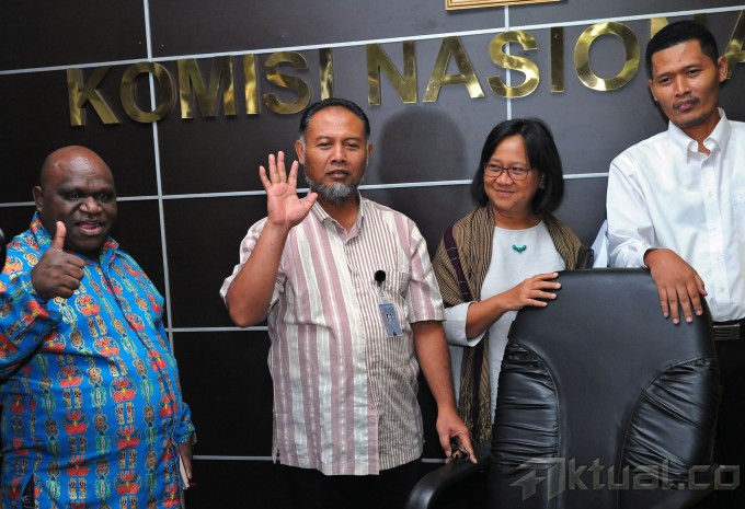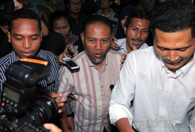 Wakil Ketua KPK Bambang Widjojanto saat tiba di kantor Komnas HAM, jalan Latuharhary, Menteng, Jakarta Pusat, Selasa (27/1/2015). Kedatangan Bambang ingin menjelaskan testimoni terkait dengan proses penangkapan yang diduga ada unsur pelanggaran HAM. AKTUAL/MUNZIR