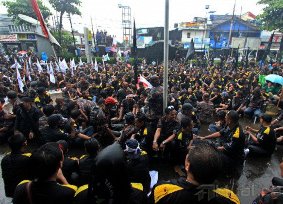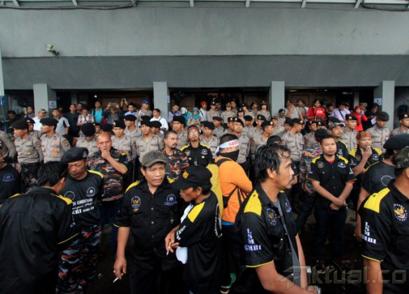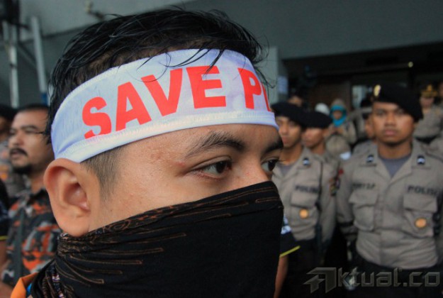 Seorang pendukung Komjen Pol Budi Gunawan melakukan aksi saat sidang praperadilan di Pengadilan Negeri Jakarta Selatan, Senin (9/2/2015). Dalam aksinya mereka meminta kepada hakim untuk menyatakan yang salah adalah salah dan benar adalah benar. AKTUAL/MUNZIR