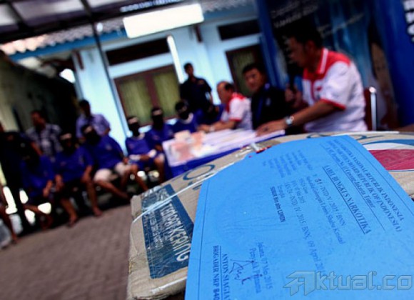 Badan Narkotika Nasional (BNN) memusnahkan barang bukti tindak pidana narkotika dari pengungkapan empat kasus April 2015 di kantor BNN, Jakarta, Kamis (7/5/2015). BNN memusnahkan sebanyak 15.981,37 gram sabu, 4.336,40 gram ganja, 59,44 gramcanna chocolate,285,62 gram happy cookies dan 15 batang rokok AKTUAL/MUNZIR