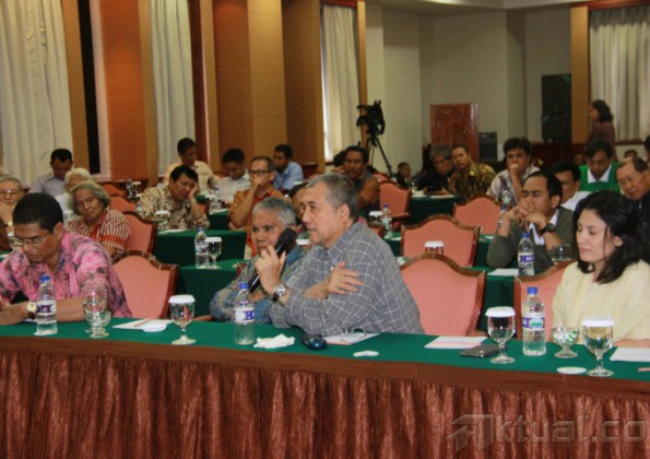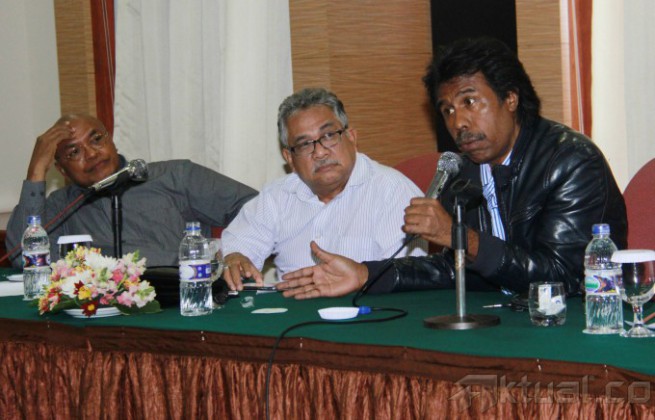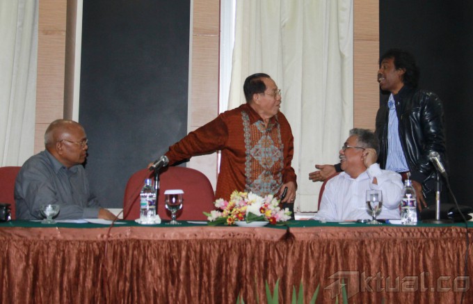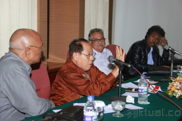 Pakar Hukum Ilmu Tata Negara, Margarito Kamis, Mantan Hakim Konstitusi, Natabaya dan Pakar Hukum Pidana, Kurdi Sitompul saat diskusi “Membedah Konstitusionalitas Keputusan KPU tentang Penetapan Capres Cawapres Jokowi-JK dan Gugatan PHPU Pilpres 2014 Prabowo-Hatta” di Jakarta, Senin, (4/8/2014). Margarito menilai, pembongkaran kotak suara yang dilakukan oleh KPU akan memberikan keyakinan kepada hakim konstitusi bahwa telah terjadi pelanggaran pada tahapan penyelenggaraan Pilpres 2014 ini. Aktual/Tino Oktaviano