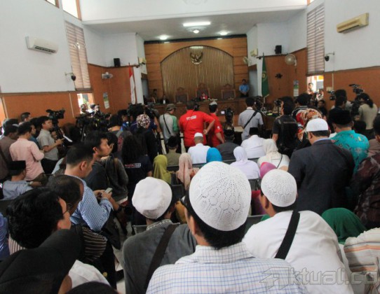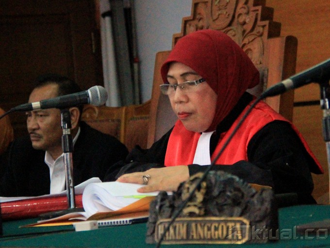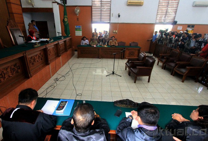 Suasana sidang praperadilan mantan Menteri Agama Suryadharma Ali yang dipimpin Ketua Majelis Hakim Taty Hardianti di Pengadilan Negeri, Jakarta Selatan, Rabu (8/4/2015). Majelis Hakim menolak gugatan Praperadialan SDA. AKTUAL/MUNZIR
