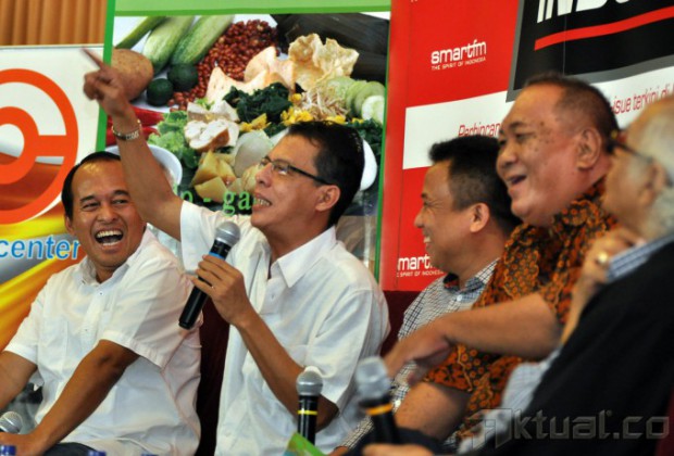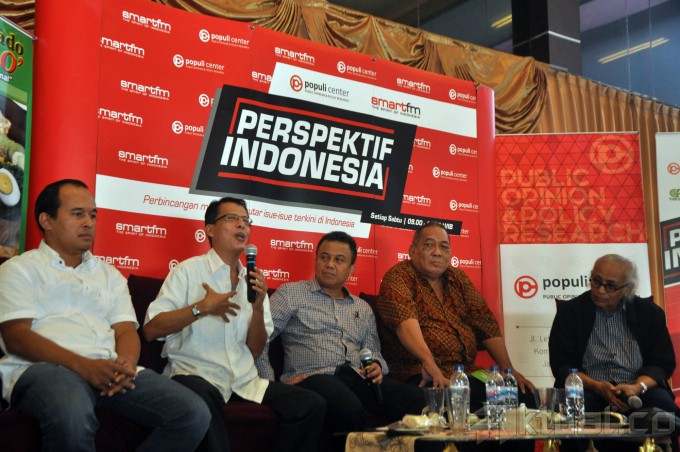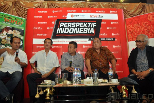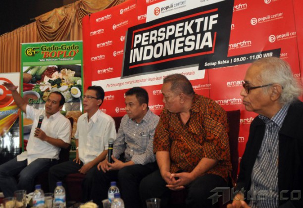 Bungkarno Lahir Dimana?Ketua Populi Center Nico Hajrjanto, Politisi PDI Perjuangan Hamid Hasyaib, Host Ichan Laulembah, Sejarawan Peter Kesendi, Guru Besar Universitas Pertahanan Dalim Said saat menjadi pembicara dalam acara diskusi di Jakarta, Sabtu (5/6/2015). Diskusi dengan topik “Bungkarno Lahir Dimana?”.membahas kotroversi tempat lahir proklamator Bung Karno. AKTUAL/JUNAIDI MAHBUB