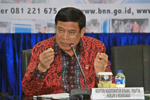 Kepala Badan Nasional Narkotika (BNN) Komjen Pol Anang Iskandar (kiri) bersama Menteri Koordinator Politik Hukum dan Keamanan Indonesia (Polhukam) Laksamana (Purn) Tedjo Edhy Purdijano, Perwakilan Jaksa, Dirjen Lapas Menhukam, saat menyampaikan Refleksi akhir tahun 2014 di kantor BNN, Jakarta, Selasa (23/12/2104), BNN berhasil mengungkap kasus sepanjang tahun 2014 diantaranya 397 jaringan sindikat Narkotika dan 583 tersangka, yang terdiri dari 552 WNI dan 31 WNA. Barang bukti yang berhasil disita 8 ton ganja, 7.894,68 gram heroin, 60 batang pohon ganja, 102 gram biji ganja, 14.914 butir ekstasi. Kami juga berhasil menyita prekursor cairan sebanyak 19.253 mililiter dan 1,9 gram Ephedrine bubuk. AKTUAL/MUNZIR
