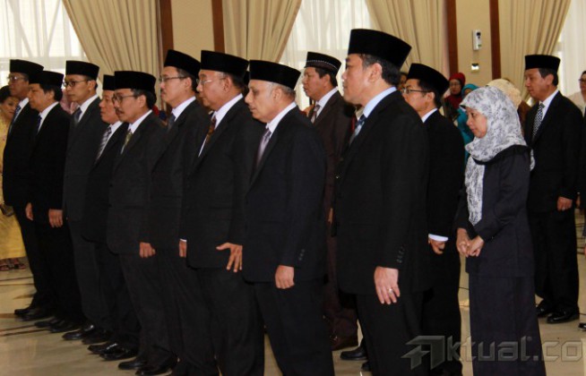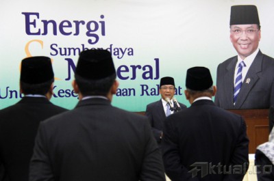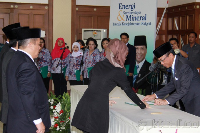 Menteri Energi dan Sumber Daya Mineral (ESDM) Jero Wacik, melantik 24pejabat eselon II di kantor Kementerian ESDM, Jakarta, Jumat (18/7/2014). Acara ini dihadiri oleh beberapa pejabat terkait dalam bidang ESDM, seperti BPH Migas dan Satuan Kerja Khusus Pelaksana Kegiatan Usaha Hulu Migas (SKK Migas) menjadi saksi dalam pelantikan. Aktual/Tino Oktaviano