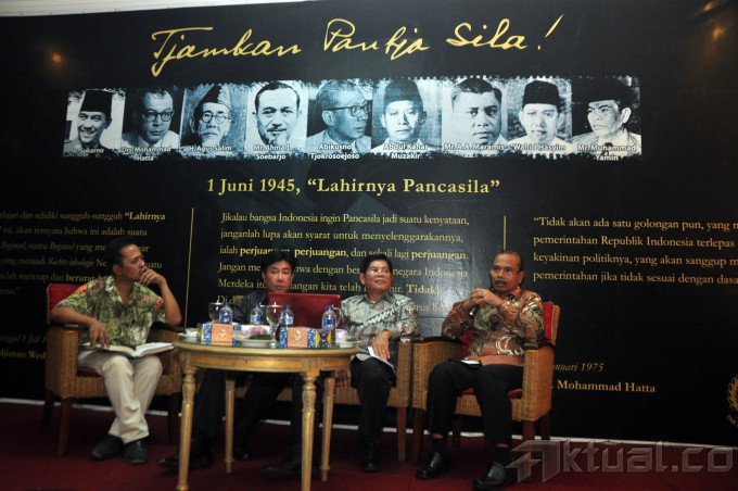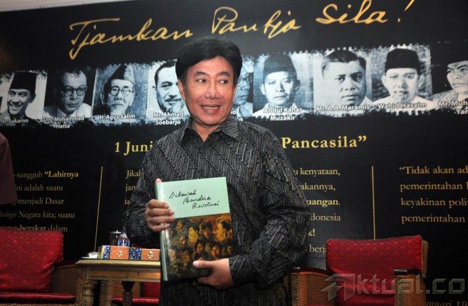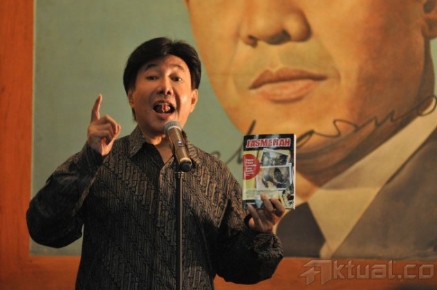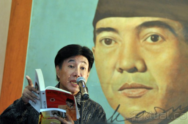 Wajah Kecewa Guruh Sukarno Kepada Presiden RIPutra Bung Karno, Guruh Sukarno Putra memberikan sambutan dalam acara bedah buku di Gedung Printis, Jakarta, Sabtu (5/6/2016). dalam sambutanya Guruh menggambarkan kenyataan kepedulian negara pada pendiri Republik ketika Presiden RI Jokowi mengatakan tempat lahir Sukarno di Blitar. Hadir dalam acara tersebut Sukmawati Sukrno Putri, Sekjen PDI P Hasto, Menteri Perencanaan Pembangunan Nasional dan Bapenas Andrinof Chaniago. AKTUAL/JUNAIDI MAHBUB