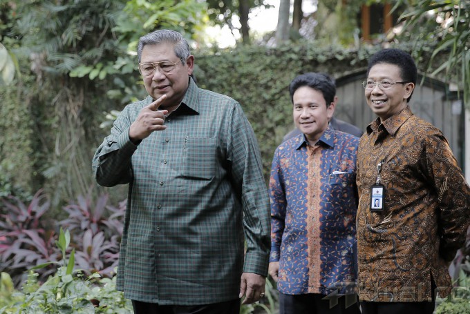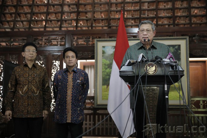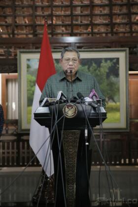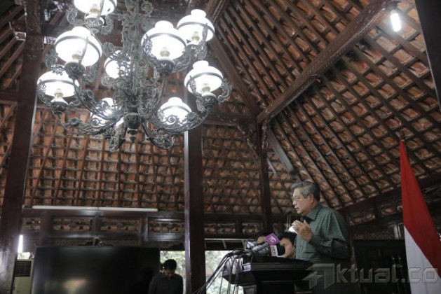 Presiden Susilo Bambang Yudhoyono (SBY) memberikan keterangan pers terkait pemberitaan yang bersumber dari situs WikiLeaks tentang dugaan korupsi percetakan uang Republik Indonesia yang dicetak di Australia yang menyebut nama dirinya dan mantan Presiden Megawati Soekarnoputri di kediamannya, Puri Cikeas, Bogor, Jawa Barat, Kamis (31/7/2014). Presiden SBY membantah telah menerima aliran dana dari Australia terkait percetakan 550 juta lembar uang pecahan Rp100.000 di Australia seperti yang diungkapkan situs WikiLeaks karena keputusan pengawasan, kewenangan untuk cetak itu ada pada Bank Indonesia, bukan pada pemerintah atau presiden. Aktual/Abror-presidenri.go.id
