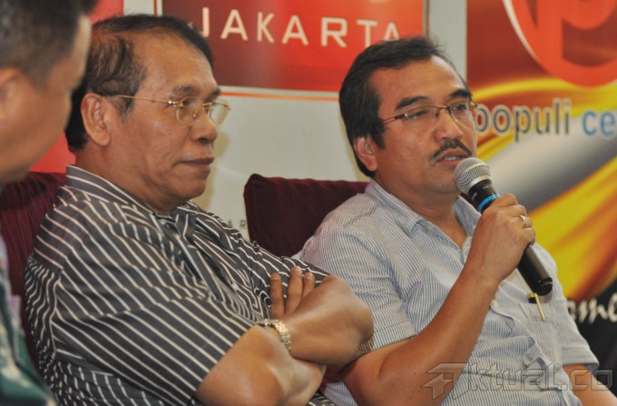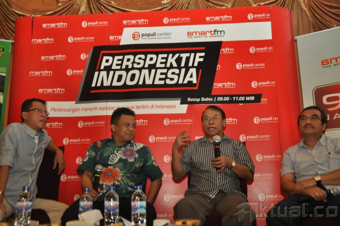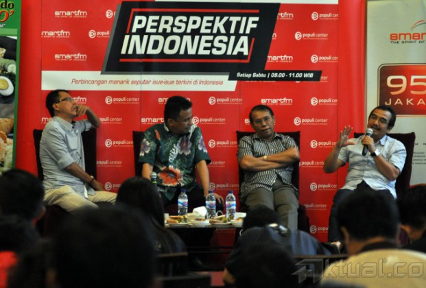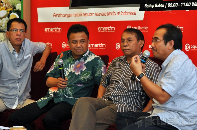 Kolomnis Politik, Fachry Ali, Ekonom Senior INDEF, MFadhil Hasan, Anggota Biro Politik PDI Perjuangan, Hamid Basyaib saat menjadi nara sumber di Jl Gereja Theresia, Menteng, Jakarta, Sabtu (31/1/2015). Dusikusi tersebut dengan topik “Alhamdulillah Lewat 100 Hari” AKTUAL/JUNAIDI MAHBUB