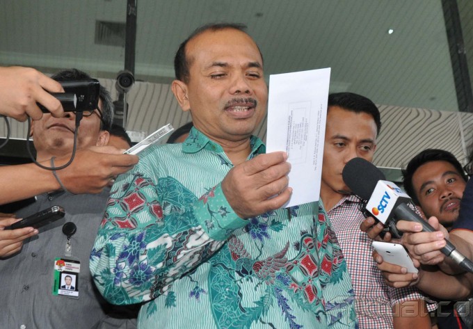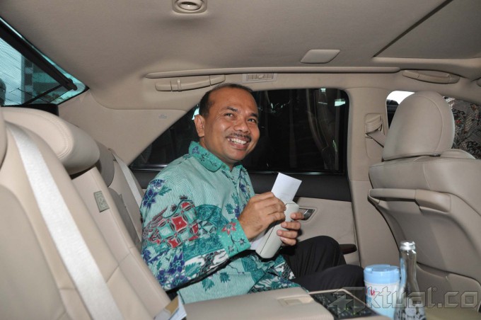 Menteri Perencanaan Pembangunan Nasional/Kepala Badan Perencanaan Pembangunan Nasional (Bappenas), Andrinof Chaniago, saat meninggalkan Gedung Komisi Pemberantasan Korupsi (KPK), Jakarta, Kamis (4/12/2014) Kedatangannya untuk menyerahkan Laporan Harta Kekayaan Penyelenggara Negara (LHKPN) kepada KPK. Ketika ditanya jumlah harta yang dimilikinya, Andrinof mengaku belum tahu. Dia menyerahkan sepenuhnya kepada KPK. AKTUAL/JUNAIDI MAHBUB