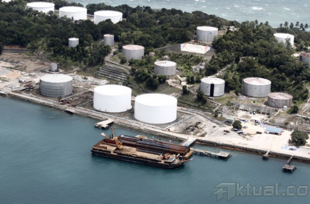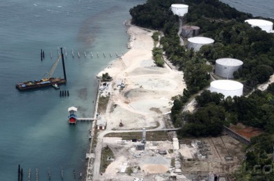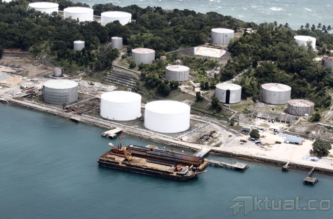 Sejumlah tanki penimbunan minyak milik Pertamina berada di Terminal Bahan Bakar (TBBM) Pulau, Batam, Selasa (10/2). Saat ini Pertamina sedang melakukan revitalisasi TBBM Pulau Sambu dengan menambah tanki penyimpanan hingga mencapai kapasitas total 310.000 kiloliter. ANTARA FOTO/Joko Sulistyo