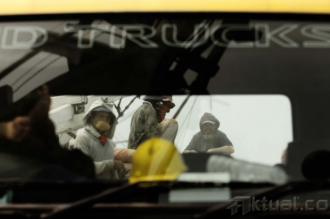Pekerja beristirahat diatas truk pengangkut semen usai memindahkan barang kesebuah kapal di pelabuhan Sunda Kelapa, Jakarta Utara, Minggu (29/9/2013). PT. Askes berupaya para pekerja sektor informal bisa masuk dalam keanggotaan Badan Penyelenggara Jaminan Sosial (BPJS) pada 2015 dan mereka yang berada di golongan miskin akan mendapat PBI (Penerima Bantuan Iuran) dari pemerintah per orang setiap bulan diperkirakan mencapai Rp 15.500. Aktual/Tino Oktaviano
